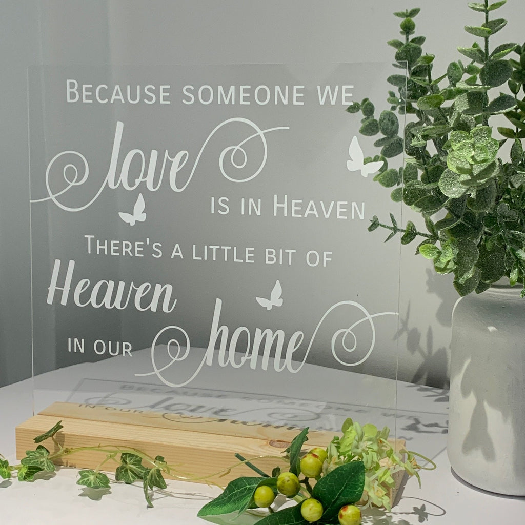 Because someone we love is in heaven, there's a little bit of heaven in our home, Acrylic Sign, Home Decor, Memorial sign, lost loved ones.
