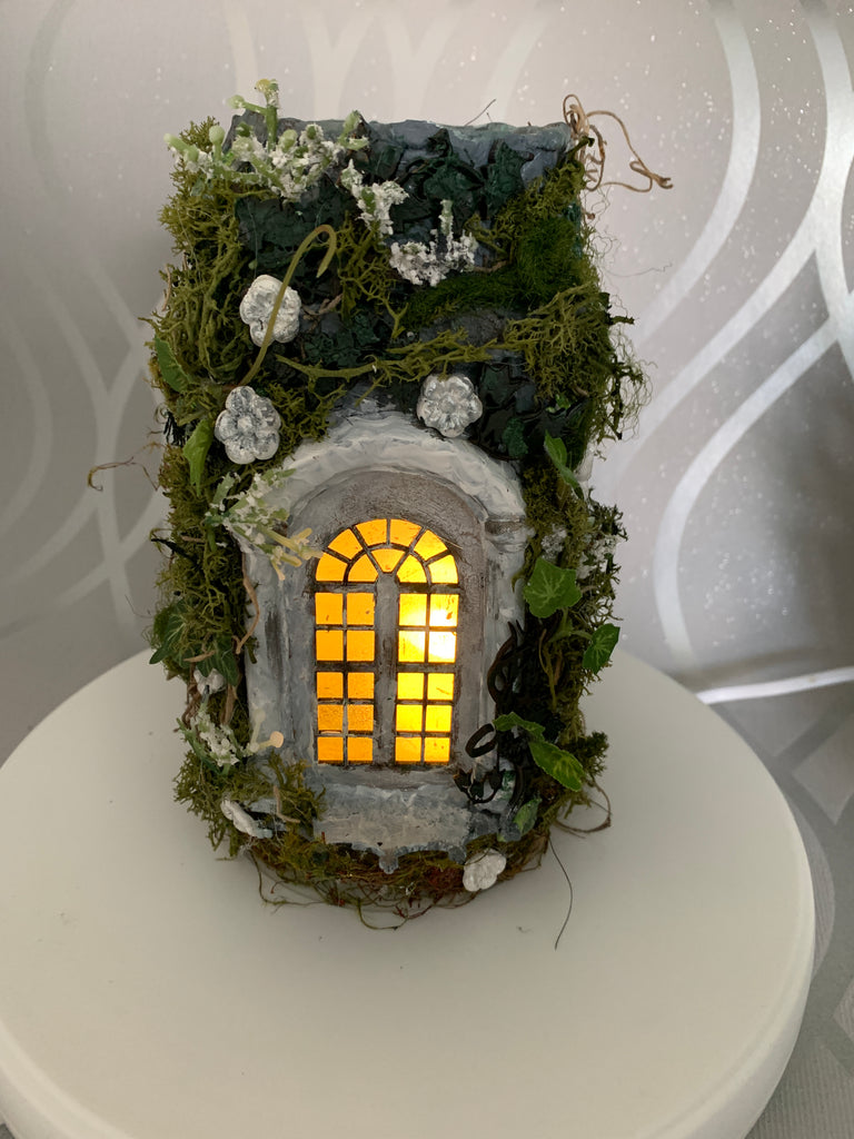 Bespoke Candle Holder - this handmade piece of art is for decorative purposes only and comes complete with a battery operated candle. This Jar measures approximately 19cm high and is made from solid glass