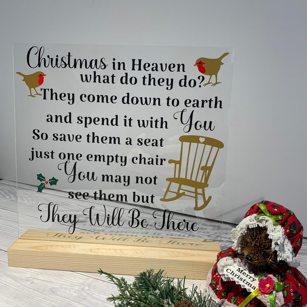 Christmas Decoration, Acrylic Stand, Christmas in Heaven what do they do? Christmas Memorial Sign