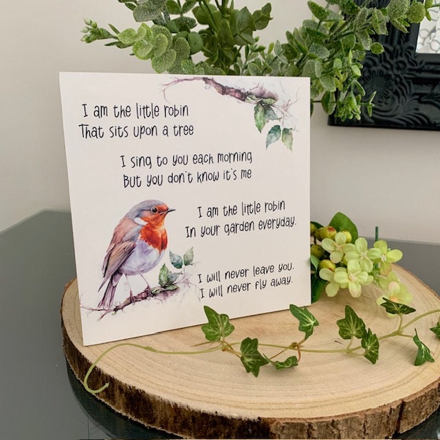 Christmas Gift, Robin sign, Memorial keepsake, I am the little robin that sits upon a tree, Lost Loved Ones. Memorial Gift, Grieving gift.