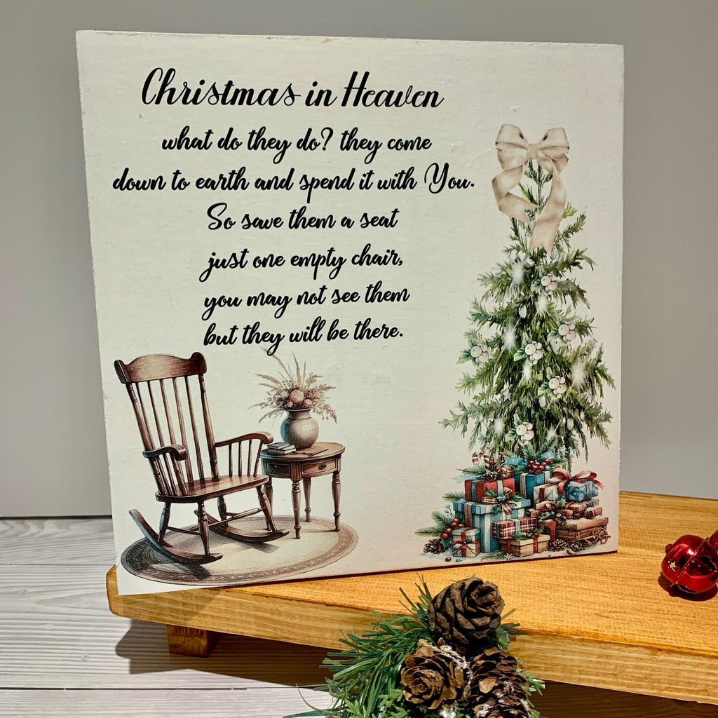 Honor the memory of your loved ones during the holiday season with our 'Christmas in Heaven, What Do They Do?' Wooden Sign. This heartfelt Christmas decoration serves as a beautiful reminder of those who are no longer with us, bringing comfort and warmth to your home.
