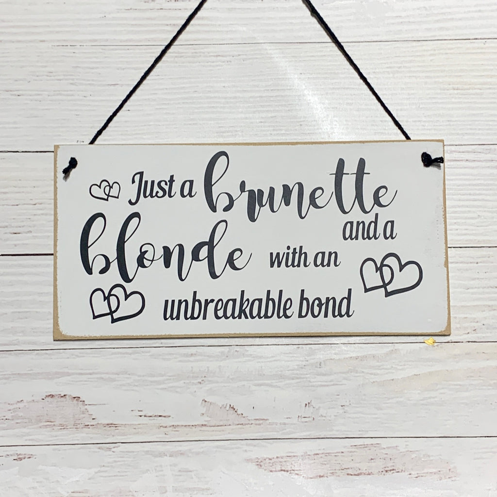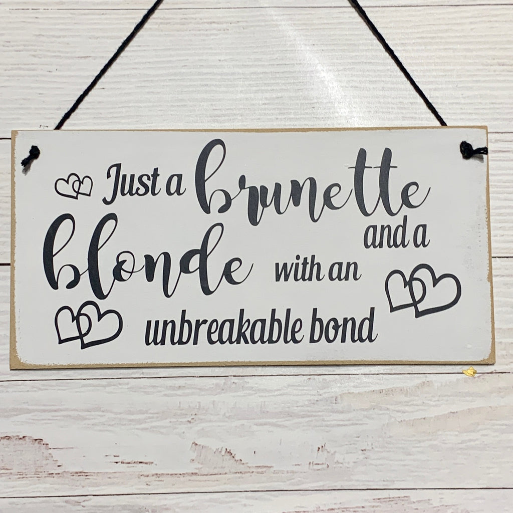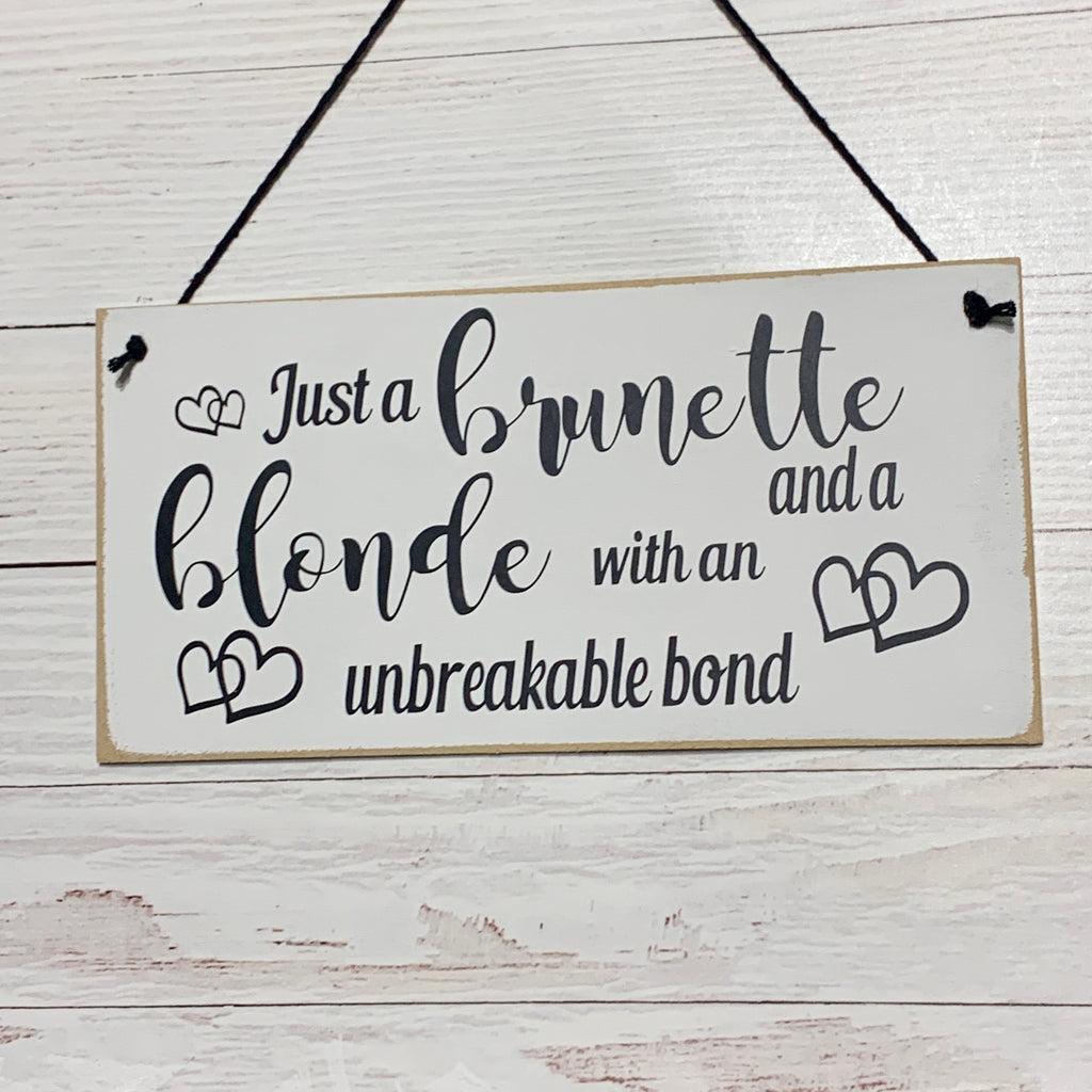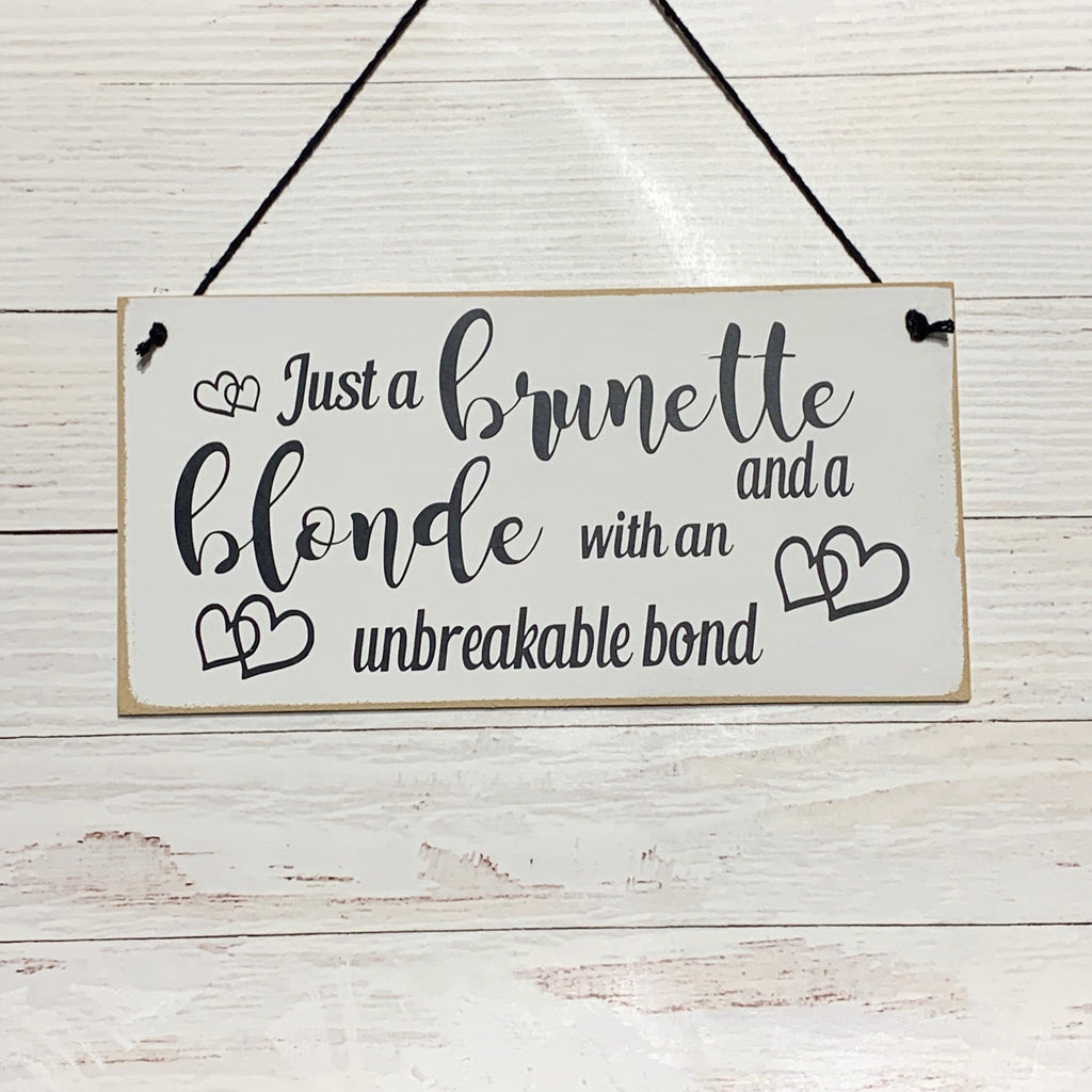 Just a brunette and blonde with an unbreakable bond | 8” x 4” Sign | wall plaque