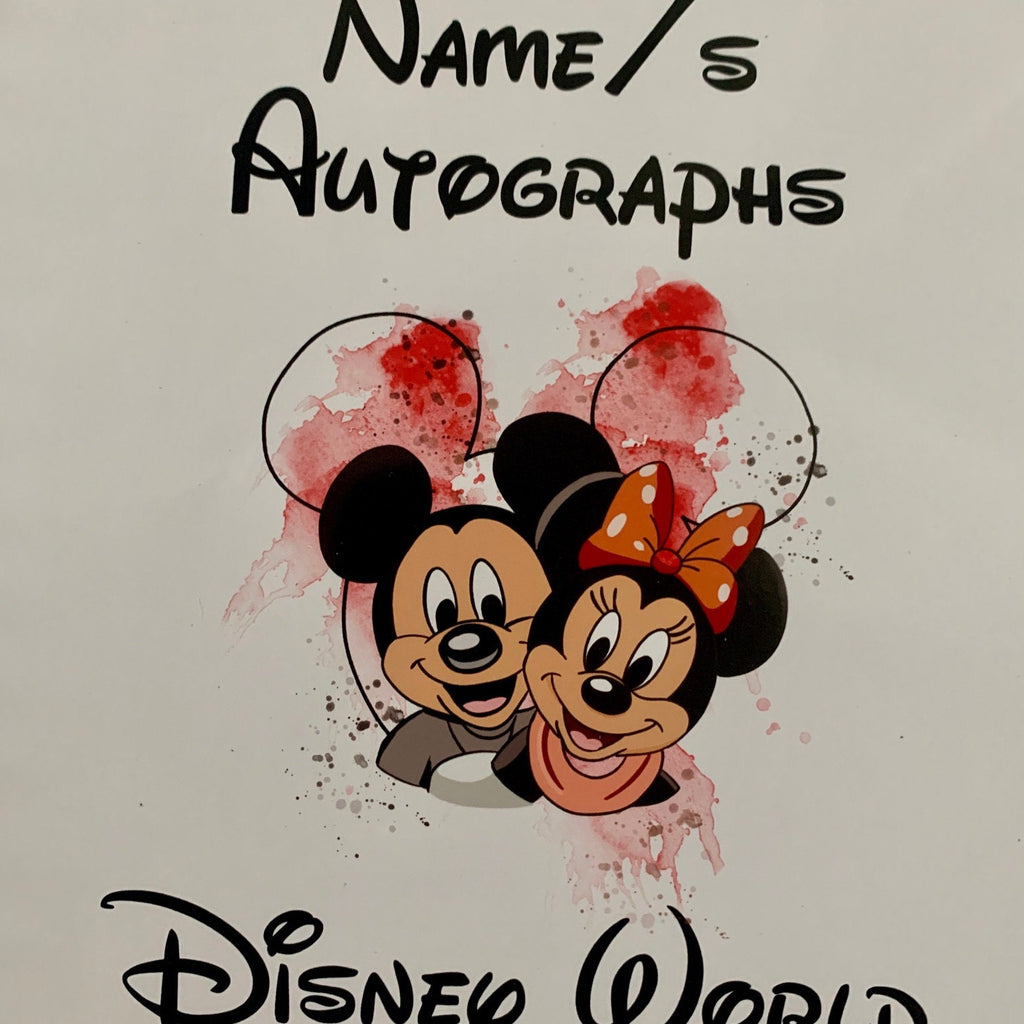 Personalised Splash Disney Autograph Book, Autograph Album, Disney Memories, Scrapbook/Journal/Book, Mickey or Minnie, Disneyland 8" x 8 "