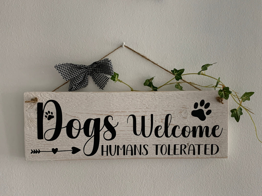 Dog sign, Dogs Welcome Humans Tolerated, Humorous Sign, Wooden Pallet Sign, Entry Sign, Home Decoration, Dog Lover sign for your home.