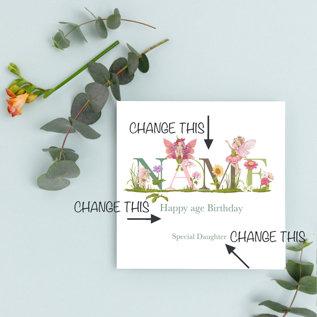 Fairy Birthday Card 2nd, 3rd, 4th, 5th, 6th 7th Birthday for Girls, Daughter, Granddaughter, Niece, Sister, Personalised Name Magical Fairy Card