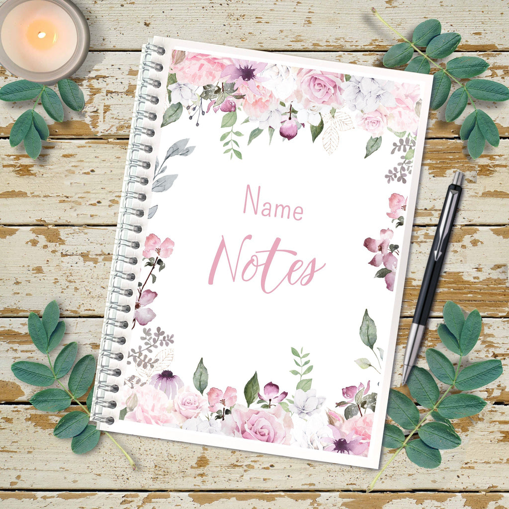 Floral Spiral notebook, Notes/Sketches/Journal, Student Notebook, Personalised Gift, Plain Notebook, Personalised gift, Flower Notebook, A5