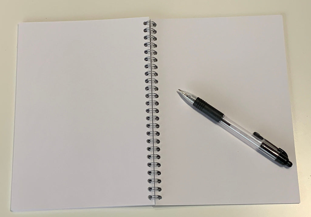 A5 (210mm x 148mm) notebook. These notebooks have 50 plain pages inside with a cardboard back and front.
