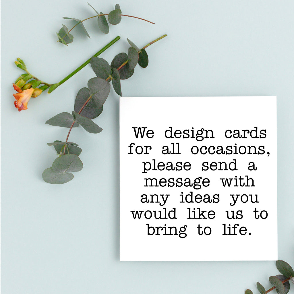 6" x 6" (260gsm) white card - blank inside. Comes complete with envelope.
