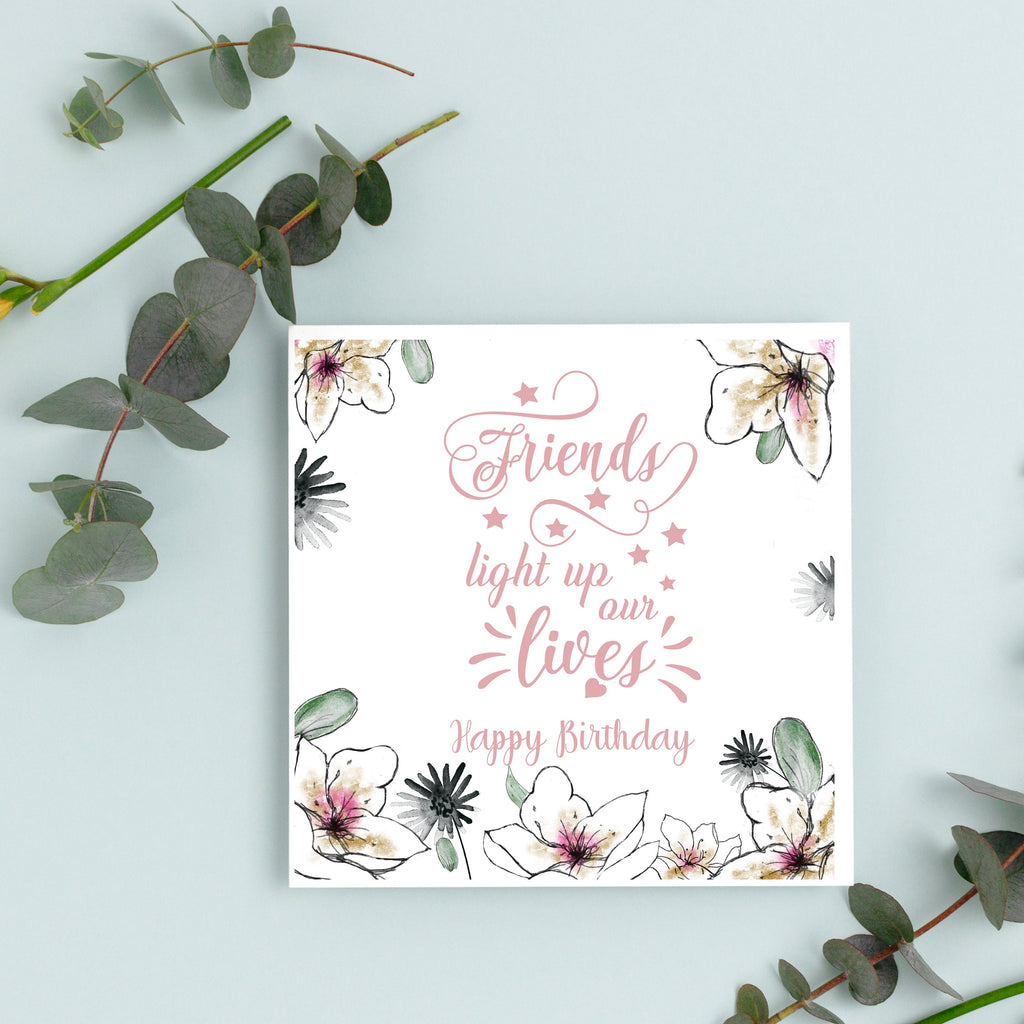 Friends birthday card, Friends light up our lives, Happy Birthday Card, Special Friend Birthday Card, Special Friend. Floral Card for Friend.