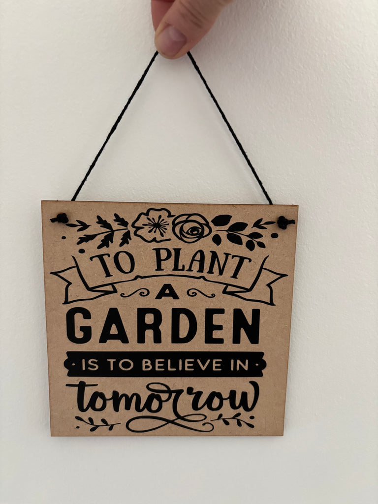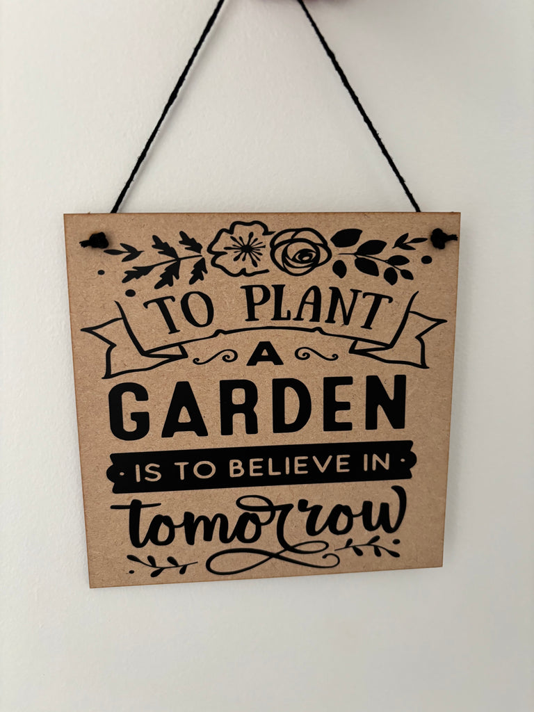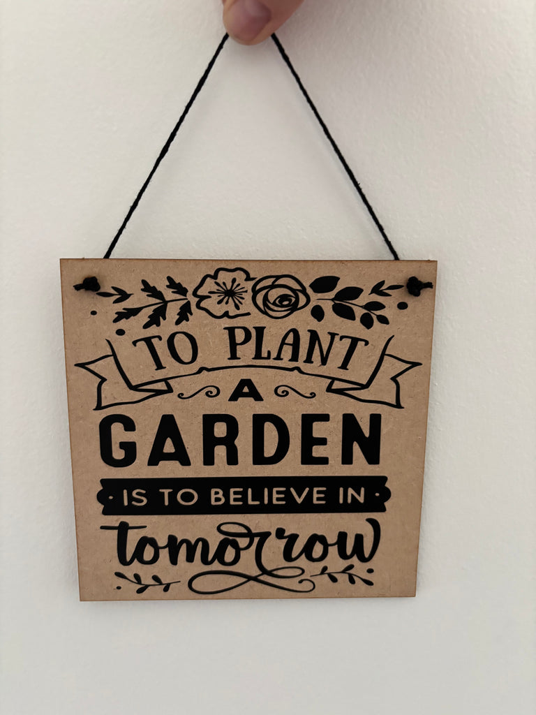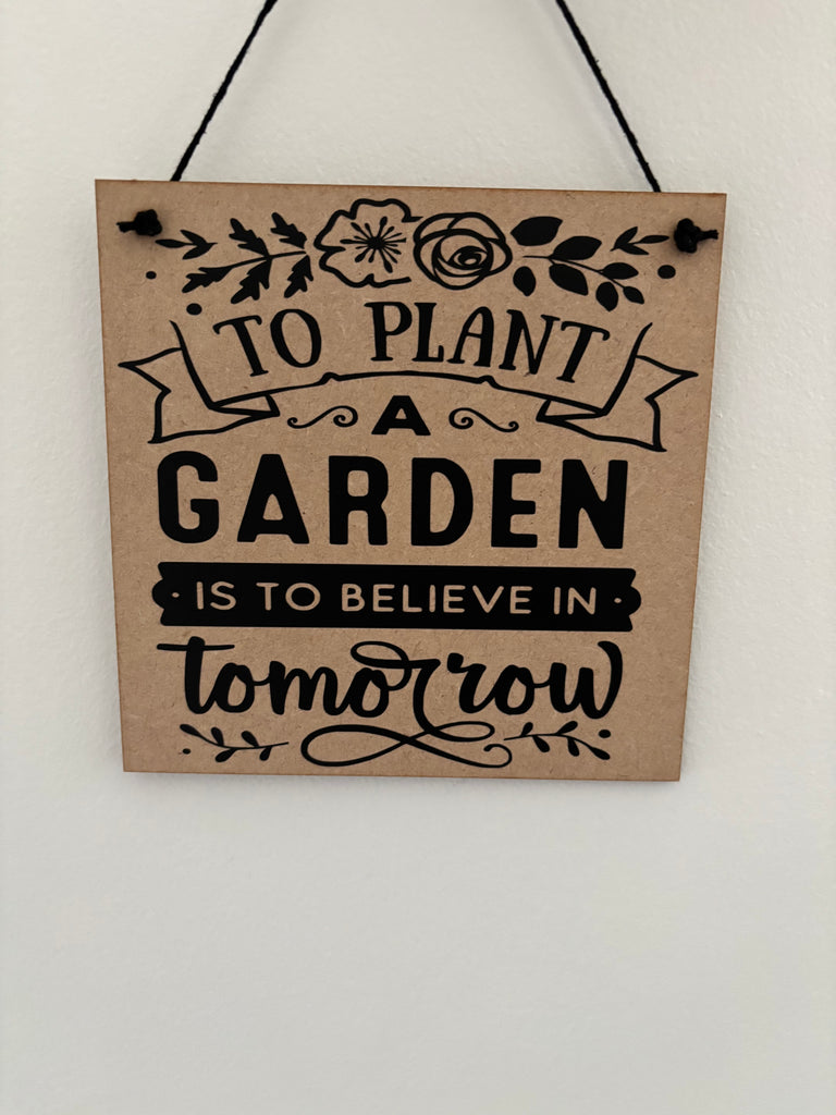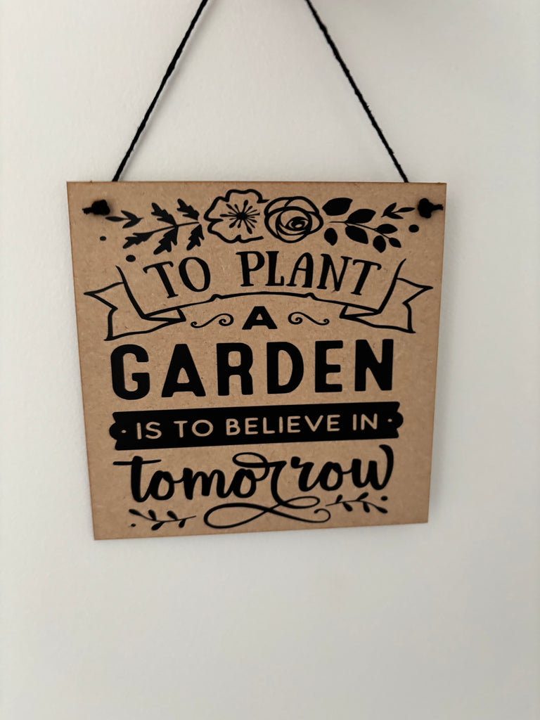 Garden inspired sign, To plant a garden is to believe in tomorrow, novelty birthday gift or Christmas gift.