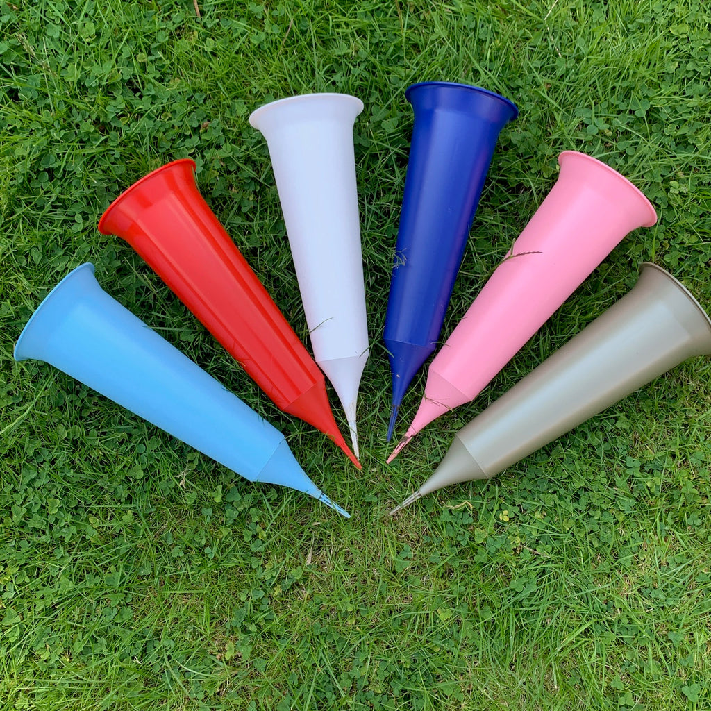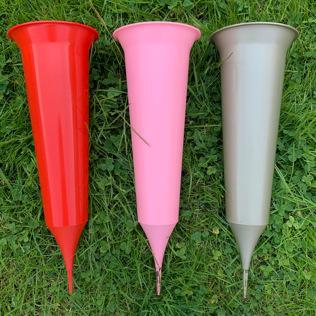 Graveside flower holder spikes secure easily into a graveside. Hard-wearing and durable plastic grave vase spike designed for outdoor use. Manufactured in the UK.