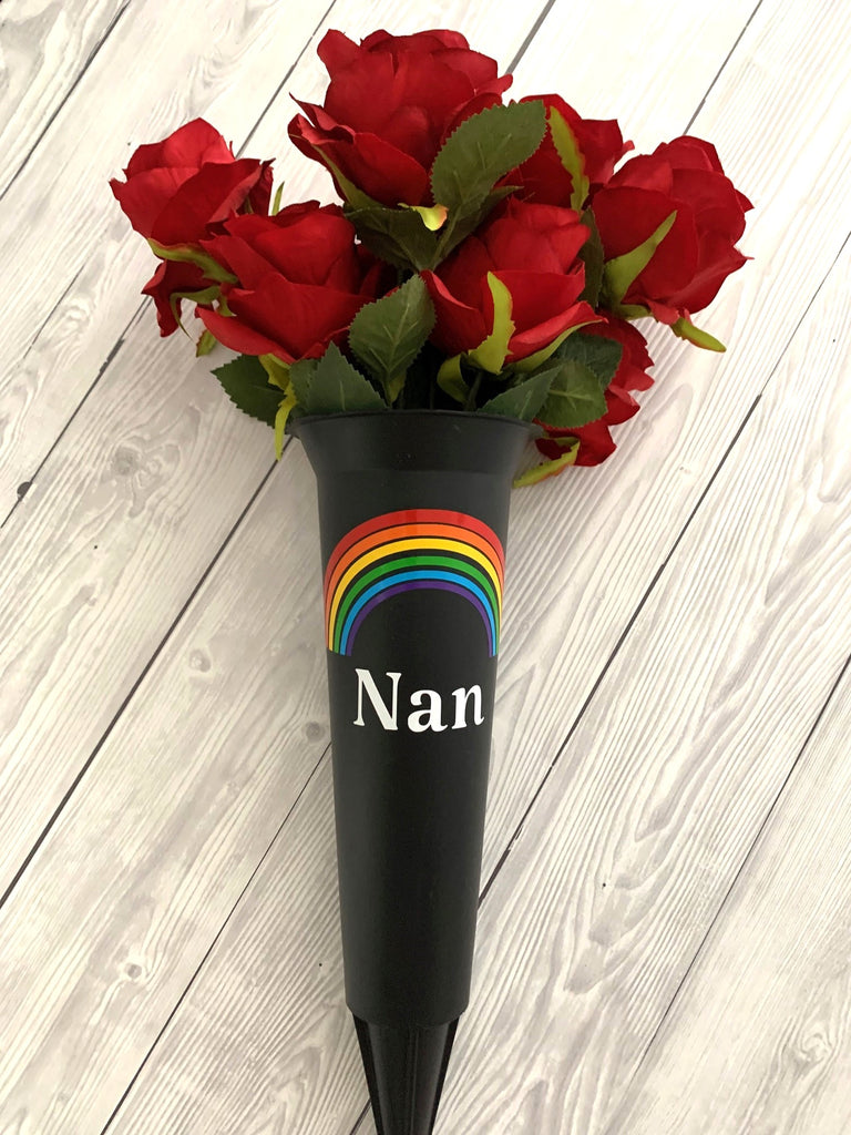 Personalised Memorial Vase | Rainbow Flower Vase | Remembrance Vase with Artificial Rose Flowers | Grieving Gift | Bereavement Gift.
