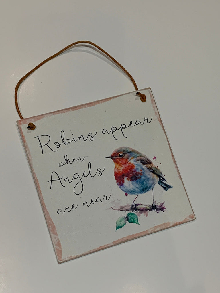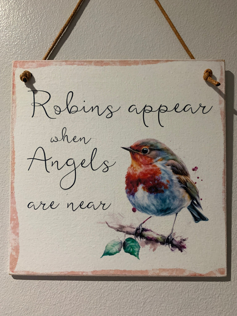 Grieving gift, Robins appear when angels are near, Memorial gift, Sympathy gift, remembering lost loved ones. Wooden Sign, Home Decor.