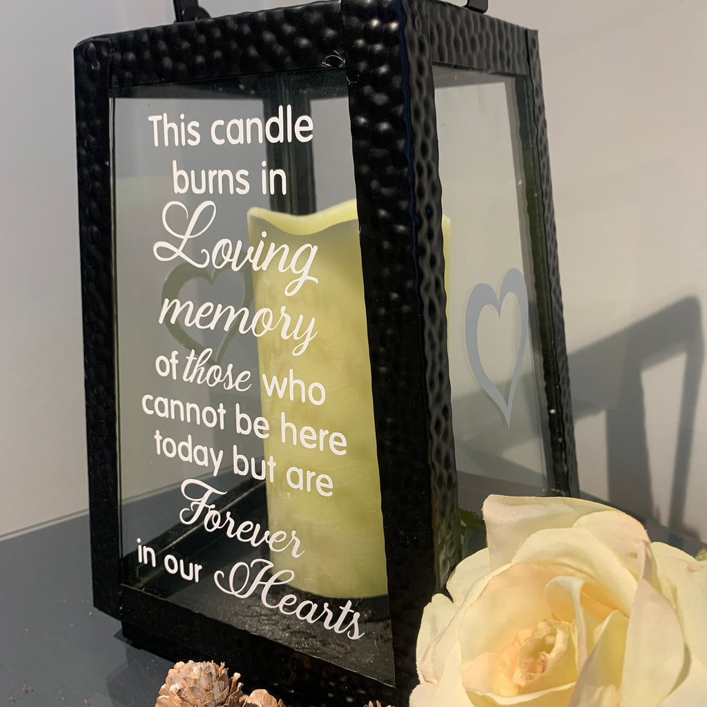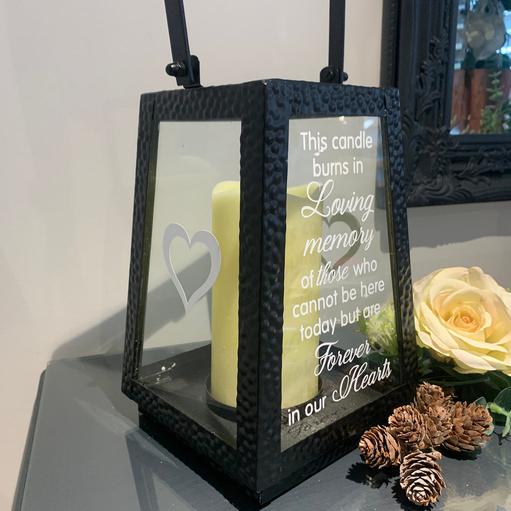 Black Memorial Lantern, This candle burns in loving memory of those who cannot be here today but are forever in our hearts. Memorial lantern, wedding decor