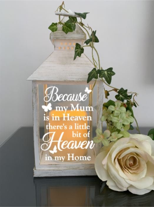 Memorial Lantern, home decor, loss of Mum, Memorial Gift, Because my mum is in heaven there’s a little bit of heaven in my home, Keepsake.