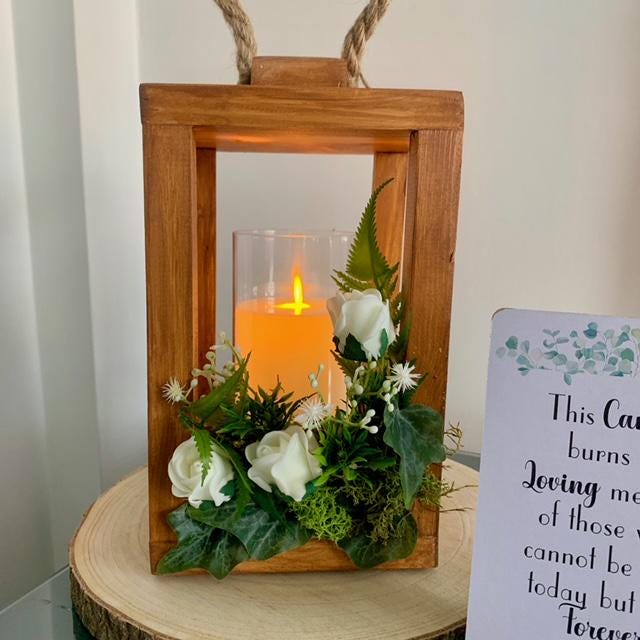 Memorial Lantern, This candle burns in loving memory of those who cannot be here today but are forever in our hearts Wooden Lantern. Wedding