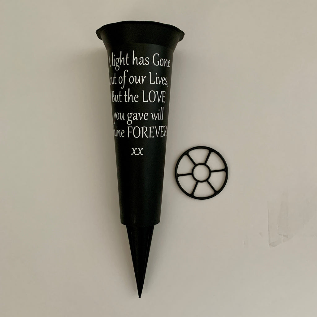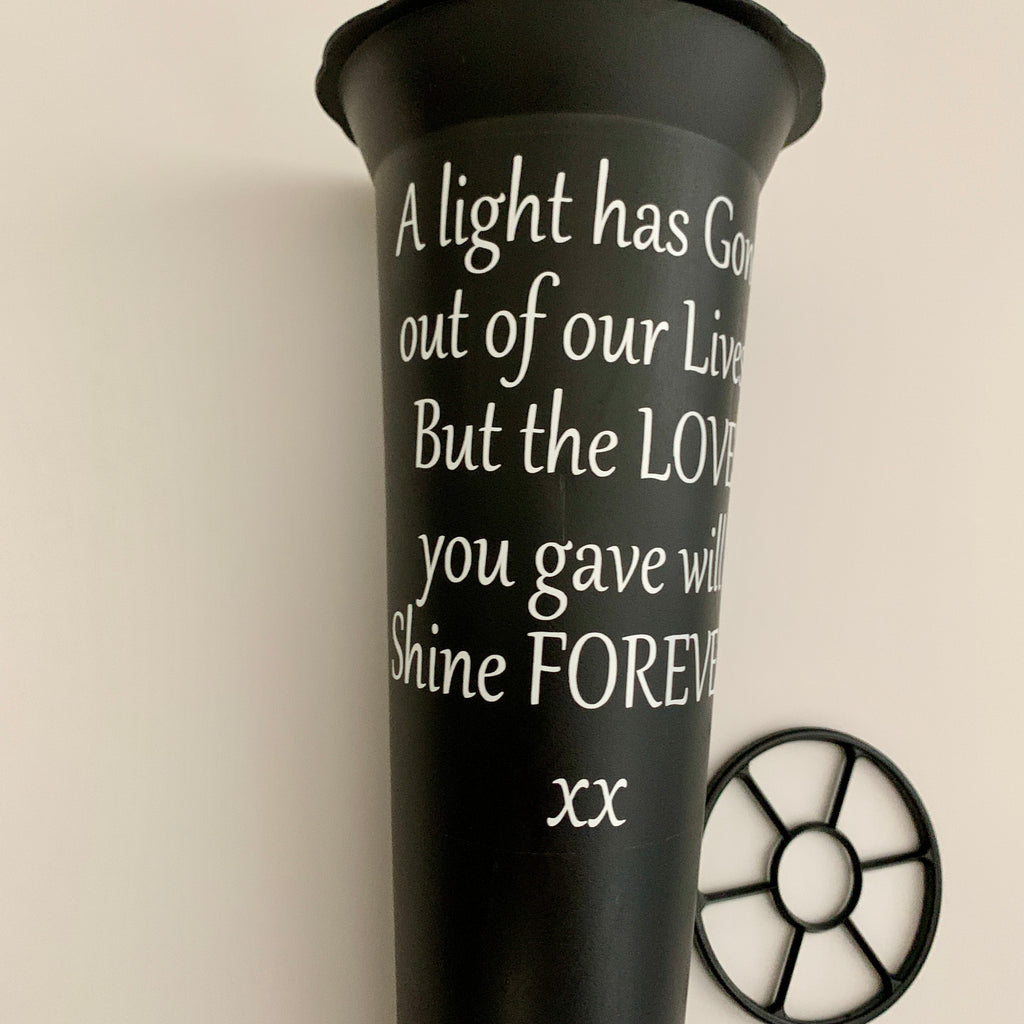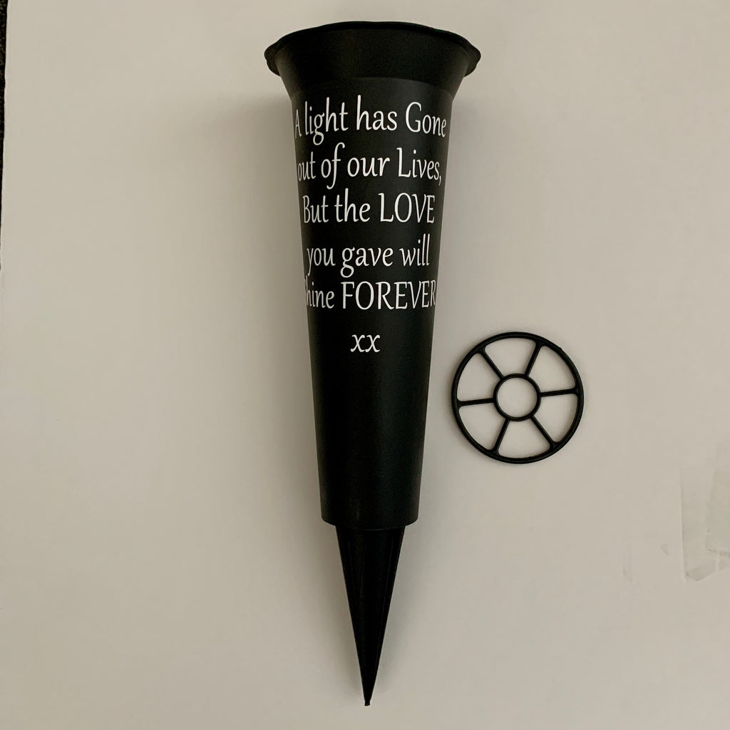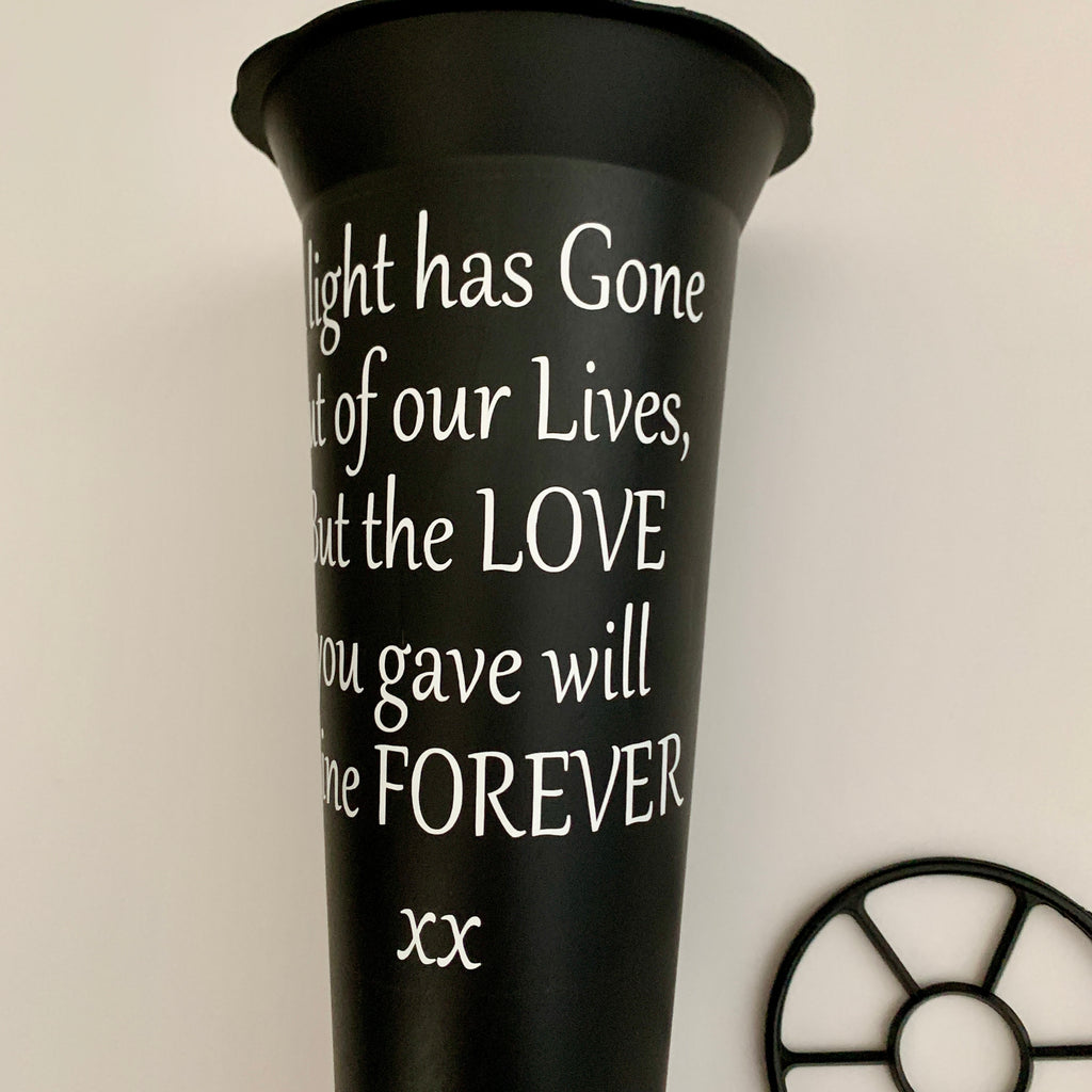 Personalised Memorial Vase | Grave Vase | Remembrance Vase | A light has gone out of our Lives but the Love you gave will Shine Forever