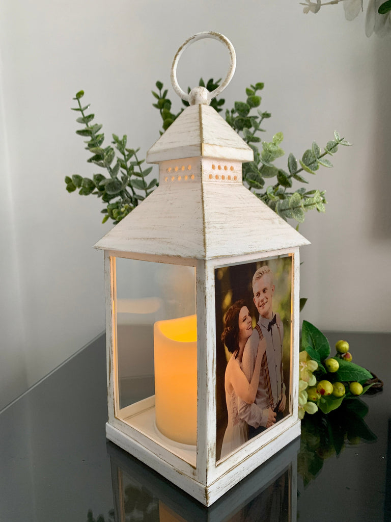 Photo Lantern with Candle, Memorial Lantern, Personalised Lantern, Sympathy Lantern, Memorial keepsake Lantern, White and Gold Lantern