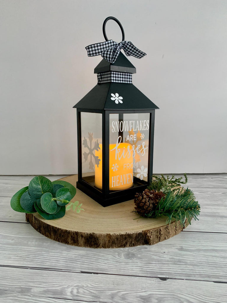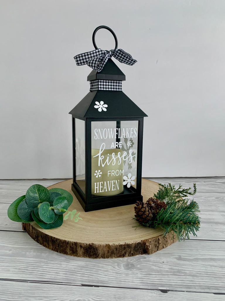 Snowflakes are Kisses from Heaven, Memorial Lantern, Christmas Lantern, Home Decor, Sympathy Gift, Grieving Gift, Candle Lantern.