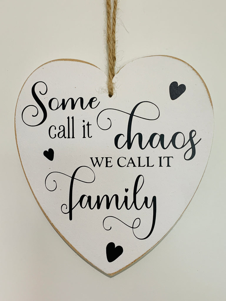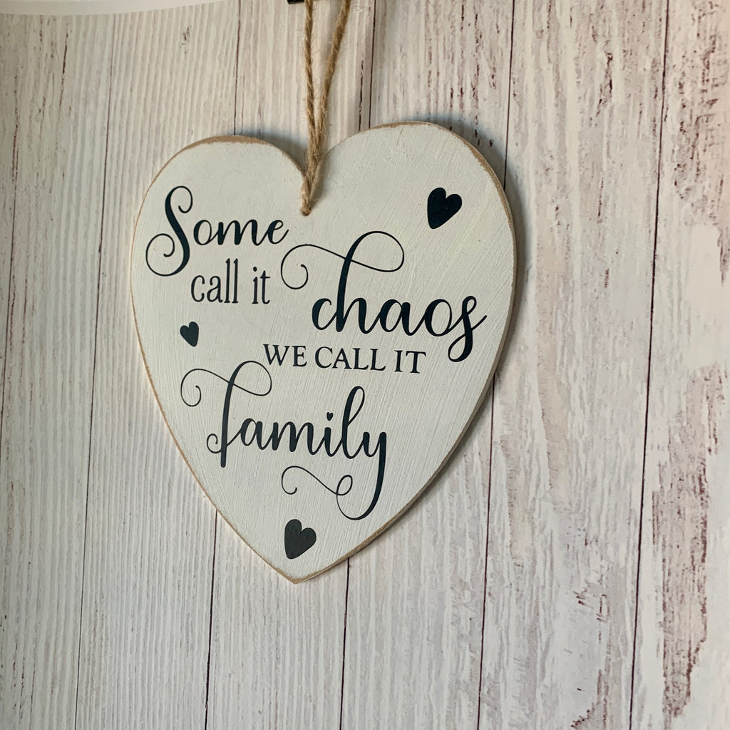 Some call it chaos we call it Family | Wooden Heart Sign | Home Decoration
