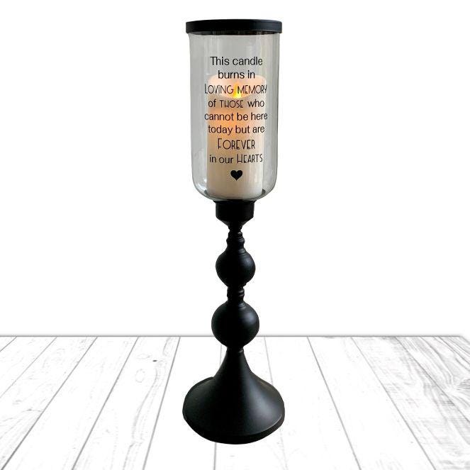 This candle burns in memory of those who cannot be here today but are forever in our hearts. Hurricane Candle Holder, Wedding Table Decor, Home Decor.