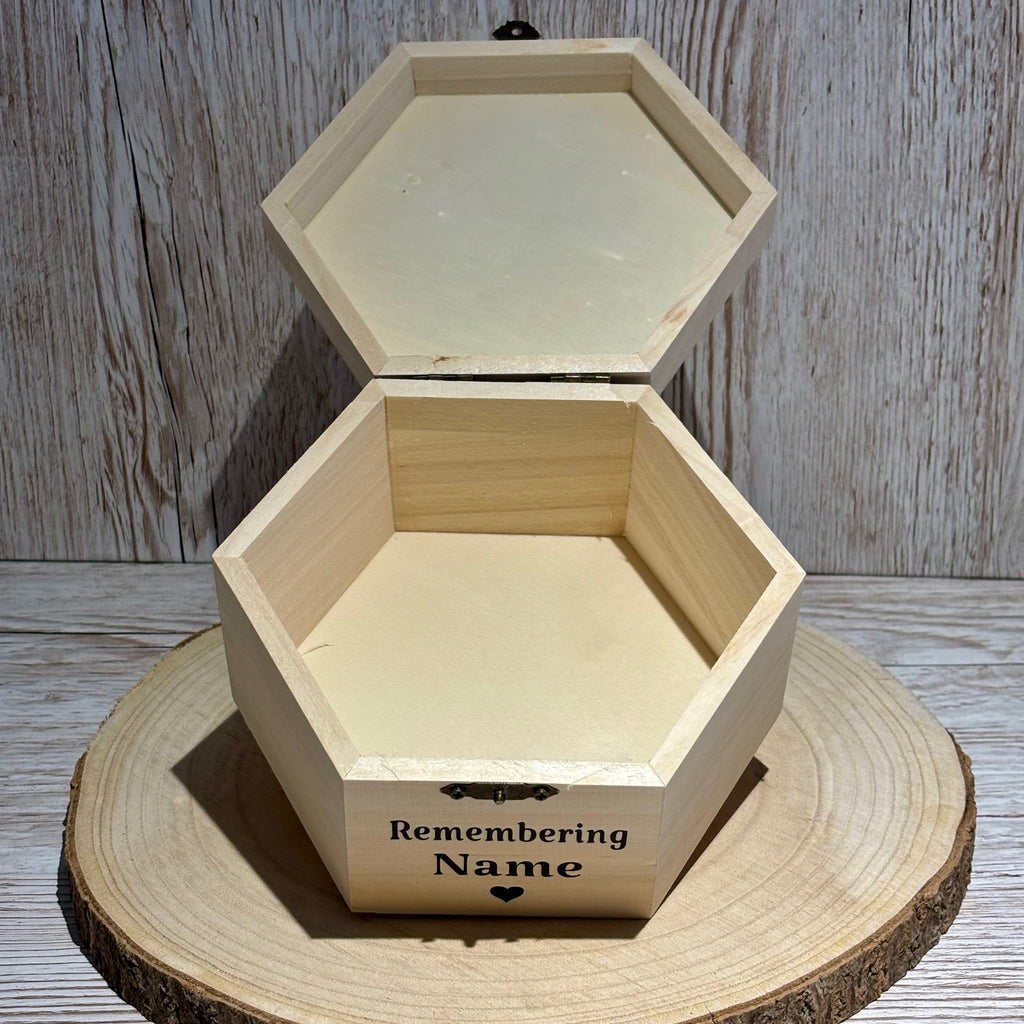 Keep cherished memories close to your heart with our beautifully crafted wooden keepsake box. Perfect as a sympathy gift, memorial box, or a personal memory box, this elegant piece is ideal for honoring and remembering loved ones who have passed away.