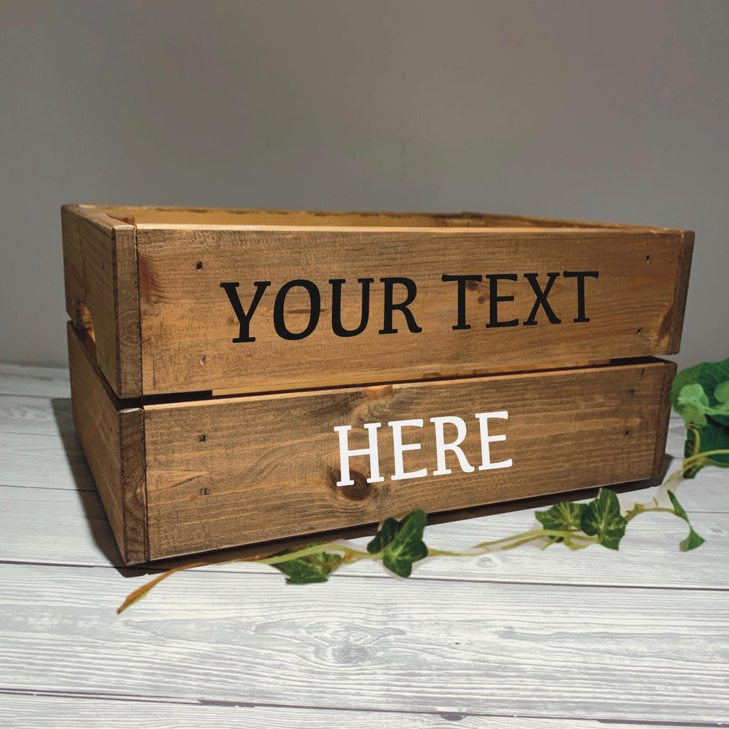 We personalise these crates in house so you can choose what colour text and also personalise to suit the occasion. Please send a message to make sure your chosen words will fit.
