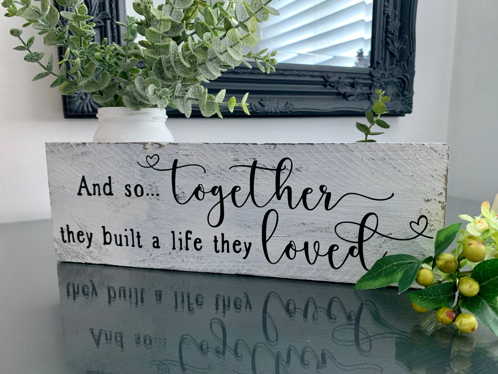 Wooden sign, And so together they built a life they loved, reclaimed pallet sign, Home Decor, Valentines Gift, Wedding Gift, Birthday Gift