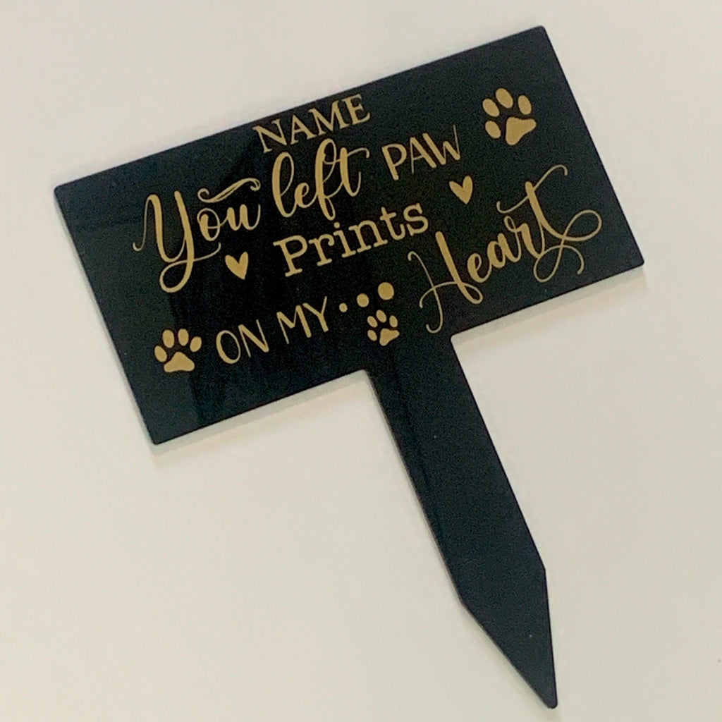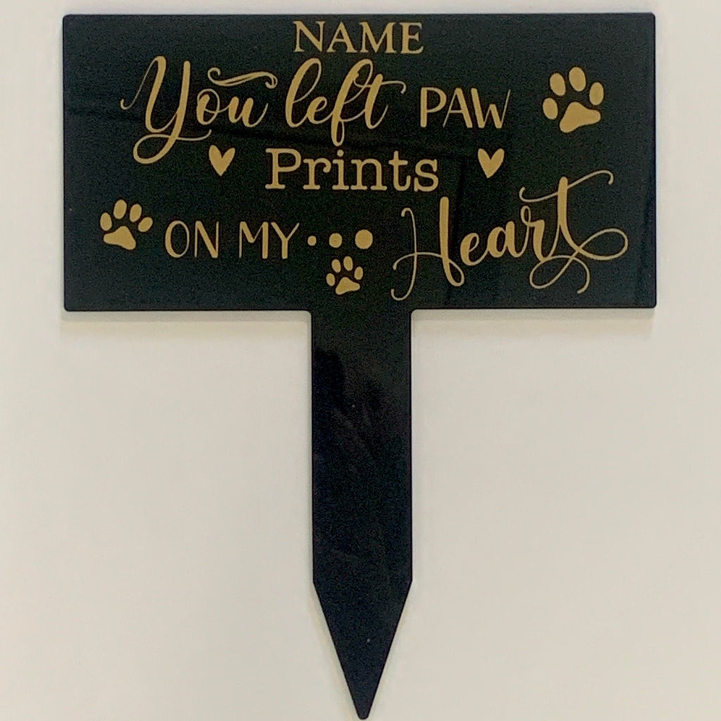 You left paw prints on my heart, Pet grave plaque, Grave Marker, Pet Cemetery, Remembrance Marker, Memorial Plaque Personalized Grave Plaque